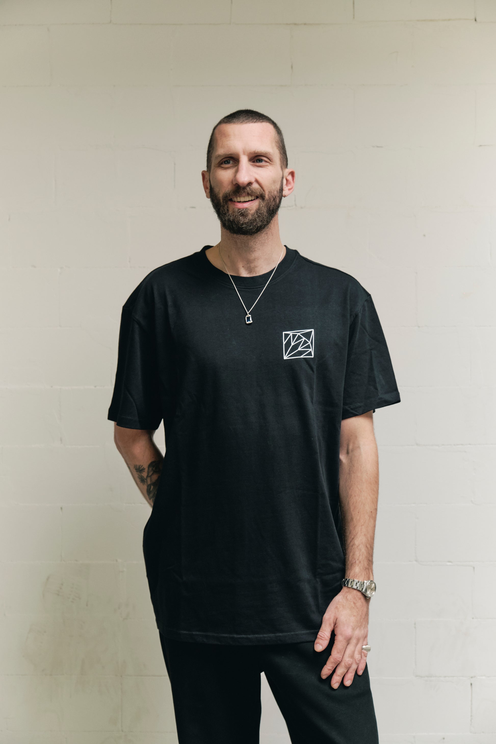The tees come in black with a white print or navy with yellow print. The designs are high quality screen printed on the back, Heist logo on the chest. They have an oversized fit. We recommend ordering a size down.
